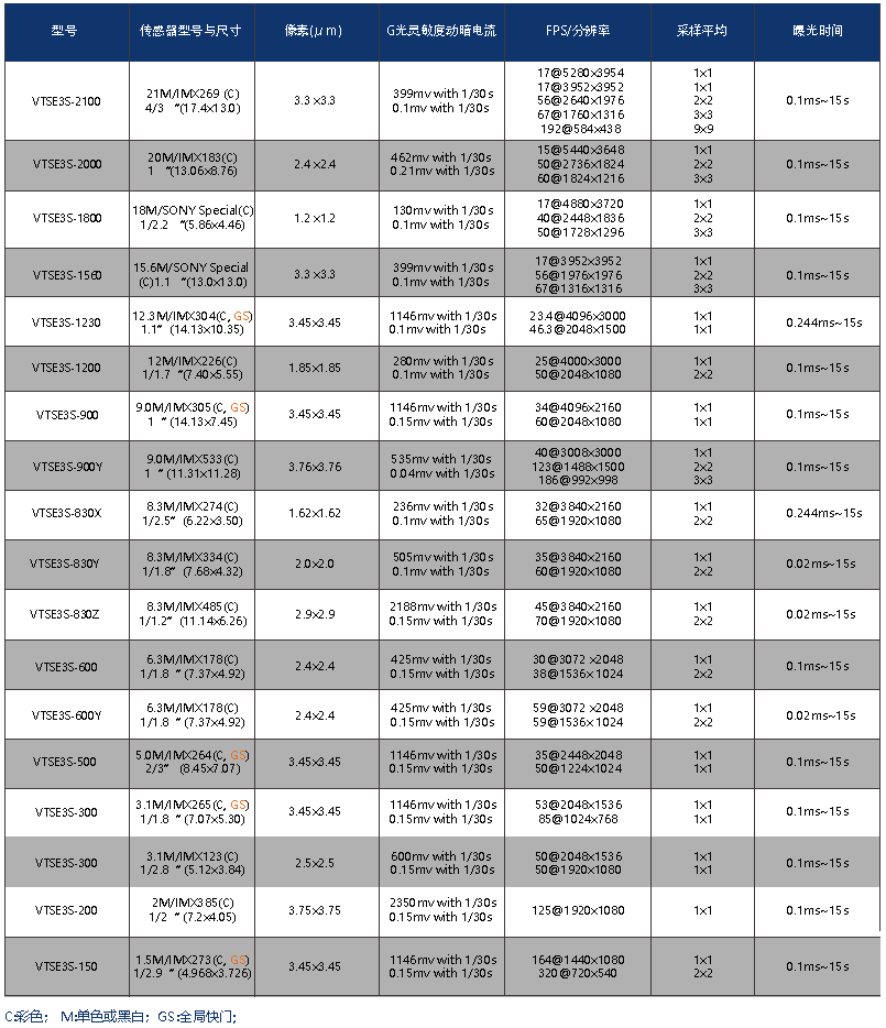 VTSE3S系列相機(jī)系采用采用Sony索尼Exmor,Exmor R,Exmor RS 背照式CMOS傳感器,EXmor 系列CMOS傳感器采用雙層降噪技術(shù),具有超高的靈敏度以及超低噪聲。