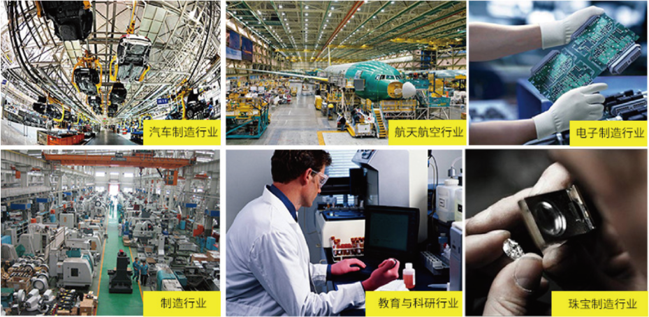 本機(jī)適用于汽車制造行業(yè)、航天航空行業(yè)、電子制造行業(yè)、制造行業(yè)、教育與科研行業(yè)。珠寶制造行業(yè)等其他領(lǐng)域。