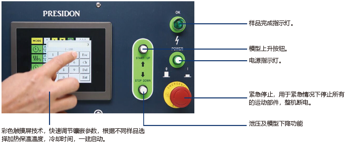 · 一鍵式全自動操作, 從加熱, 加壓, 保壓到冷卻全自動操作。