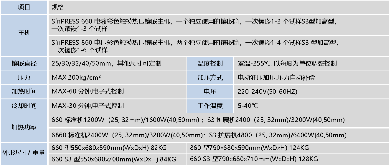 針對不同客戶,多種系統(tǒng)尺寸可選擇鑲嵌直徑標(biāo)配32mm,有25mm 30mm 40mm 50mm ,可選SinPRESS 660為單模型SinPRESS 860為雙模型標(biāo)配一個模型鑲嵌一個試樣選購銅間隔片一次可達(dá)到2 個試樣,大大提高制樣效率。